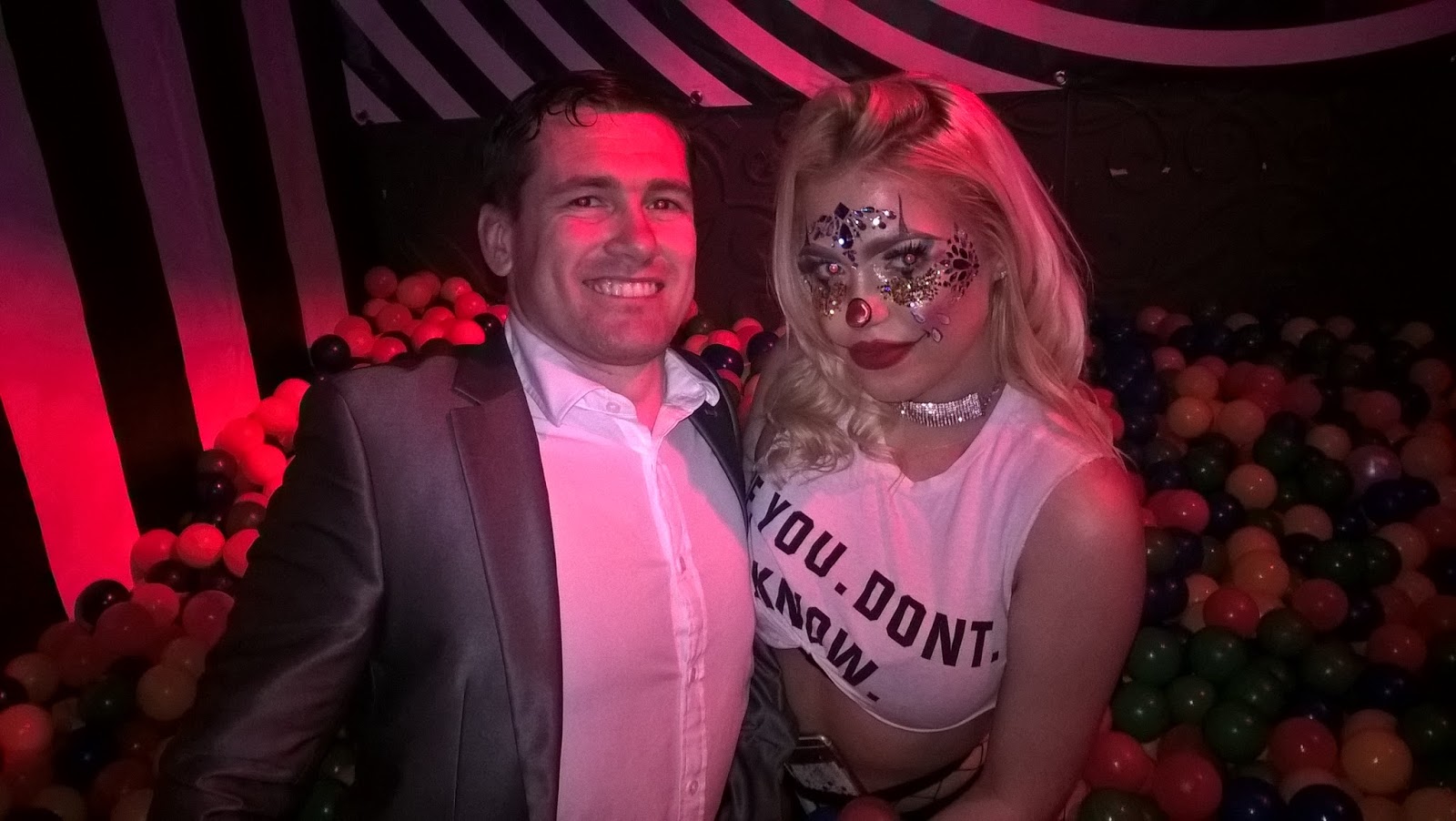 to The Milton Club after last month's outrageous party for the bank holiday Sunday. Later he'll fit himself through the frame of a tennis racket and